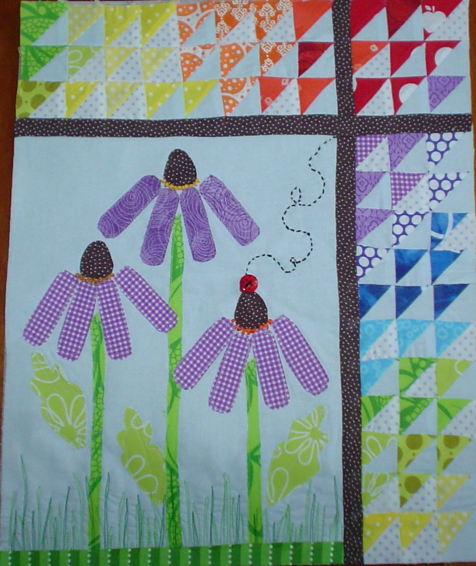 Our Bee Mama....Staci sent out all colors of the rainbow (from a great charm swap) and asked us all to make an "Imaginary Garden".....so much fun and so hard to stop playing with.